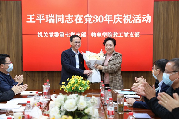 吴永刚主持王平瑞同志在党30年庆祝活动。大家一起观看了王平瑞同志在pp电子工作期间的剪影视频,包含教学科研篇、实验室建设管理篇、科研工作管理篇、党建工作篇等,记录了王平瑞同志17年来的点点滴滴,把大家的思绪拉回到了王平瑞作为一名教师、作为一名管理者、作为一名党员等多个身份无私奉献拼搏奋斗的每一个瞬间,大家感动得无不热泪盈眶。