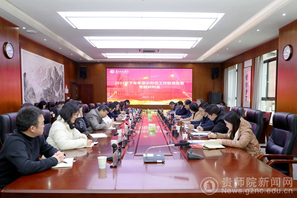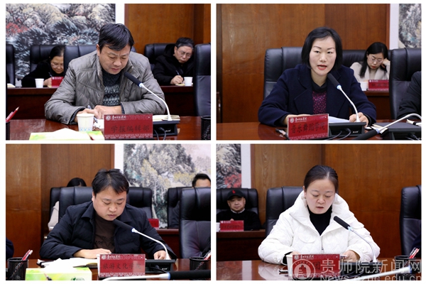 会上,校党委委员、纪委书记韩兵兵同志传达了《贵州省委(党组)网络意识形态工作责任制实施细则》;校党委宣传部部长薛璞和统战部部长张婷分别汇报了pp电子今年下半年的意识形态工作和宗教工作情况,为大家增强问题意识,找准做好学校意识形态工作和宗教工作的着力点提供了基本遵循。在工作交流发言环节中,校团委书记罗荣、学报编辑部主任赵德肃、旅游与文化学院党总支书记冯建国、音乐与舞蹈学院党委书记付巧分别从党群部门、教辅部门、二级学院的角度总结了意识形态工作的经验,并对新形势下如何抓好基层意识形态工作进行了深入探讨。