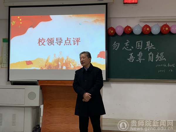 本网讯 12月9日,以“勿忘国耻,吾辈自强”为主题的团日活动在致远楼517顺利召开。副校长余维祥、学院党委书记熊德永、学院党委副书记于治鳞、辅导员和教师代表与物电学院团员青年,以党史学习教育的契机,认真学习构筑爱国主义理想信念,认识当代青年的使命与担当。