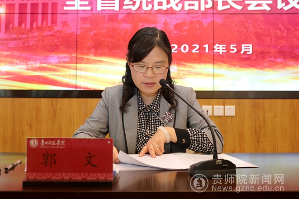 会上,郭文传达全省统战部长会议精神。张婷介绍了pp电子统战工作的基本情况,并结合主要目标、工作措施对2021年统战工作进行了安排部署。