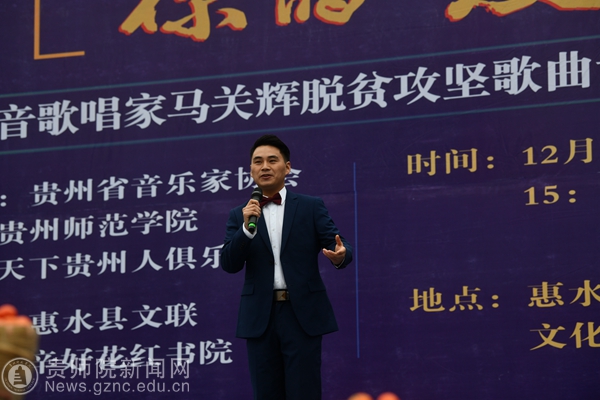 本网讯 12月12日,由pp电子游戏官网、贵州省音乐家协会、天下贵州人俱乐部主办的pp电子音乐舞蹈学院院长、男高音歌唱家马关辉《你的爱》脱贫攻坚歌曲专辑分享会在叶辛好花红书院举行。惠水县政协主席黄俐伶,惠水县委常委、宣传部长孙玲,人民政府副县长王龙菊,天下贵州人俱乐部秘书长、叶辛好花红书院院长刘学文,惠水县文联主席李建果参加活动。pp电子党委委员、副校长邹晓青出席活动并致辞。