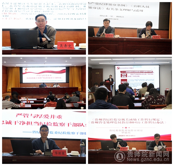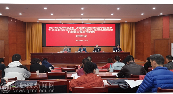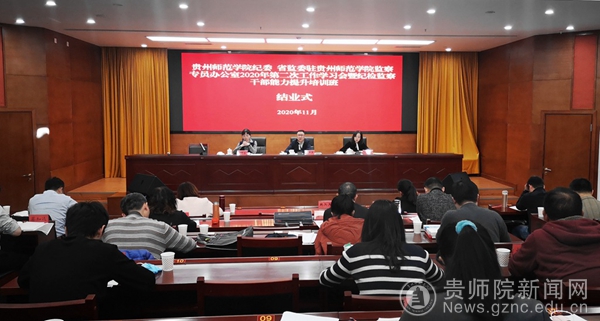 本网讯 11月15日至17日,正值全国上下掀起学习宣传贯彻党的十九届五中全会精神热潮之际,pp电子在贵州省纪检监察干部学院举办了2020年纪检监察干部第二次工作学习会暨能力提升培训班。校党委委员、纪委书记、省监委驻校监察专员韩兵兵出席。省纪委省监委派驻第十一纪检监察组组长吴寿文亲自到堂作专题辅导讲座。