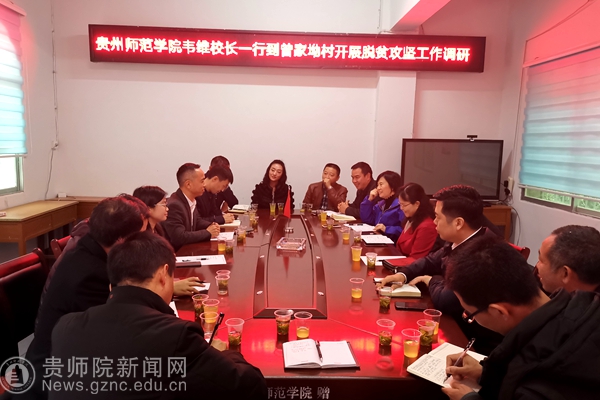 调研组一行在曾家坳村会议室举行了脱贫攻坚工作调研会,驻村工作队队长干正洋主持。首先,峨岭街道党工委书刘刚对韦维一行不辞辛劳赶赴一线调研脱贫攻坚工作表示欢迎和感谢,他说,峨岭街道在脱贫攻坚中得到了pp电子游戏官网的倾情关心和帮助,为峨岭街道整体出列乃至印江整县脱贫摘帽贡献了师院力量,同时也对直接参与脱贫攻坚一线的7名同志给予高度肯定。随后,7名驻村队员分别介绍各自帮扶村的基本情况、脱贫攻坚近期工作及后续巩固提升打算。汇报结束后,郭文强调要做好扶贫工作后半篇文章,pp电子游戏官网将与峨岭街道通力合作,充分发挥pp电子的人才优势和教育优势,为脱贫成效再续新章。