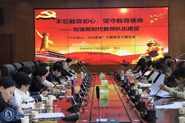 本网讯 11月4日上午,按照《pp电子游戏官网“不忘初心、牢记使命”主题教育实施方案》统一部署,校党委委员、副校长郭文在信息楼二楼会议室为分管部门讲授“不忘教育初心、坚守教育使命——加强新时代高校教师队伍建设”主题教育专题党课。科研处党支部、人事处党支部、发展规划处及心理健康咨询中心党支部、教师工作处党支部、学报编辑部党支部等支部全体党员参加专题党课学习。党课由科研处党支部书记、科研处副处长李佩主持。
