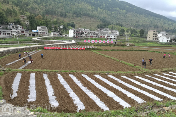 2017年以来,杨柳塘村充分利用与贵州师范院结对帮扶的机会,与师范学院签订“校农合作”协议,解决农产品销售的“后顾之忧”。紧扣农业产业调整“八要素”,积极争取100多万扶贫资金建设1920平方米蔬菜育苗大棚和3600平方生产大棚。同时,采取“民心党建+集体经济组织+农户”的方式,发展蜂糖李50亩,红香柚200亩,桃子50 亩,种植200亩时令蔬菜。采取“22114”利益链接方式,群众通过土地流转、就近务工、利益分红等方式,实现人均增收2780元。