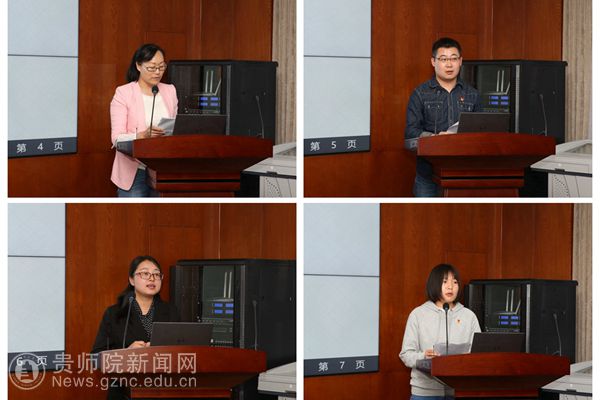 音乐与舞蹈学院党委书记付巧、校团委副书记王天宇、数学与大数据学院团委书记伍玲婧、旅游文化学院学生代表许媛分别从不同的角度围绕学习习近平总书记在“纪念五四运动100周年大会”的重要讲话精神依次作了交流发言。