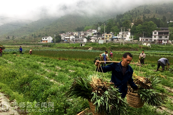 贫困户熊华军搬运蔬菜