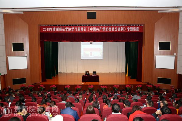 本网讯 根据《中共中央纪委关于认真学习贯彻<中国共产党纪律处分条例>的通知》精神,为学习宣传、贯彻落实好《条例》,10月25日,pp电子特邀省委党校科学社会主义教研部副主任、教授郝建为pp电子师生作解读新修订《中国共产党纪律处分条例》专题讲座。副校长令狐荣锋、校纪委书记王之瑞出席讲座,校纪委委员、副科级(含)以上党员干部、各基层党委纪检委员、各党支部书记、纪检委员、各学院教师党员代表、学生党员代表400余人参加讲座。讲座由王之瑞主持。