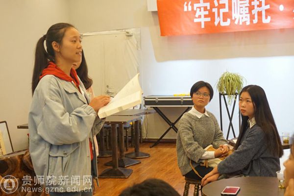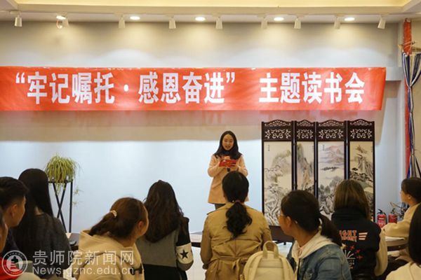 本网讯 在改革开放40周年之际,为深入学习习近平新时代中国特色社会主义思想,全面落实全国全省高校思想政治工作会议讲话精神,教育和引导广大青年不断增强“四个自信”,积极响应党中央的号召,争做有理想、有本领、有担当的新时代新青年,努力成为勇于担当的社会主义合格建设者和可靠接班人。10月10日下午,由校团委主办、校礼仪队承办、广播电视台以及团团工作室协办的以“牢记嘱托·感恩奋进”为主题的读书会活动在大学生文化创意基地开展。校团委副书记傅小芳、寇源老师和路尚明老师参加了此次活动。