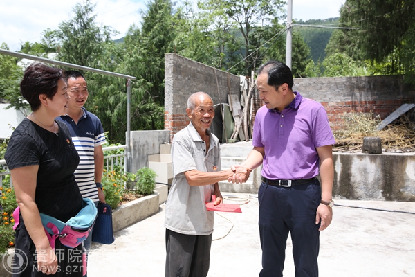 石培新与贫困老党员亲切交谈、嘘寒问暖,为他们送上党的关怀