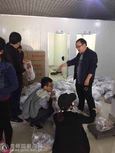 根据pp电子驻村工作队的要求,印江峨岭关村的380余只肉鸡和500余件林下放养鸡蛋急需销售。学校领导高度重视,及时安排部署,明确分工,立即行动。由校工会负责购买数量统计、驻村工作队负责宰杀、运送;后勤处负责组织销售等,在同心村第一批50件鸡蛋快递至学校食堂后,今日,第二批印江农产品顺利运抵校农结合直销点向老师们销售。
