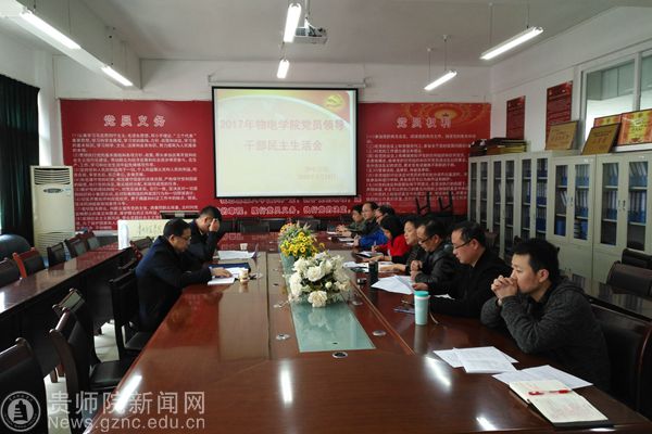 本网讯 3月13日下午,物电学院全体领导班子成员在宁静楼419会议室召开2017年度党员领导干部民主生活会。副校长令狐荣锋,校纪检监察办公室副主任于治鳞参加了此次会议。学院领导班子全体成员、教工党支部委员、院团委副书记、博士教师代表、青年教师代表、民主党派教师代表、辅导员代表、行政人员代表列席会议。