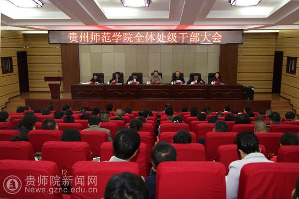 党委副书记、校长郁钟铭传达贵州省两会精神。过去五年,是贵州省发展历史上极不平凡的五年。五年来,全省上下苦干实干、奋力赶超,经济社会发展呈现出稳中有进、转型加快、质量提升、民生改善的良好态势。习近平总书记在参加党的十九大贵州省代表团讨论时指出,贵州取得的成绩,是党的十八大以来党和国家事业大踏步前进的一个缩影。贵州之所以有今天政通人和的政治局面、后发赶超的良好态势、感恩奋进的精神状态,根本原因是有习近平总书记为我们掌舵领航,有以习近平同志为核心的党中央的坚强领导,有习近平新时代中国特色社会主义思想的科学指引。全省广大干部群众团结奋进、拼搏创新、苦干实干、后发赶超,是我们的力量所在、希望所在。今后五年,是贵州发展非常关键的五年,新时代历史机遇汇集于此,脱贫攻坚决战于此,同步小康决胜于此,全面建设社会主义现代化新征程开启于此。历史的画卷需要我们去绘就,精彩的华章需要我们去续写,我们要拥抱新时代、聚焦新目标、落实新部署、实现新作为,唯有只争朝夕、苦干实干,才能确保夺取决战脱贫攻坚、决胜同步小康的新胜利,同步开启全面建设社会主义现代化新征程。