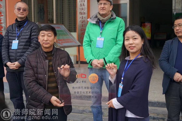 本网讯 经同步小康驻村工作队精心策划,设计学院副院长聂森牵线搭桥,中南民族大学少数民族审美文化研究中心、华黍文化艺术研究所所长刘凡教授、德国著名艺术家、教育家、柏林工程艺术大学Walter Bergmoser教授等5名专家2月28日赴印江土家族苗族自治县实验小学开展留守儿童艺术治疗活动。3月2日正值中国的传统节日——元宵节,在这样一个特别的日子,pp电子游戏官网设计学院、华黍文化艺术研究所Love on艺术基地在印江县实验小学挂牌,意味着pp电子游戏官网关注印江县留守儿童艺术治疗正式拉开帷幕,下一步将和印江县实验小学“结对”着眼于农村留守儿童的心灵呵护,不定期赴该校开展艺术治疗活动,为孩子的心灵营造避风港。学校还将联合华黍文化艺术研究所寻找资金资助印江县留守儿童到武汉参与更多艺术治疗和艺术体验项目,尽微薄之力帮助需要帮助的人,将大爱洒向少数民族贫困地区,关心、关注、关爱留守儿童的心理健康,净化他们的心灵,培养留守儿童的健全人格,让他们都成为祖国最美丽而又最灿烂的花朵。