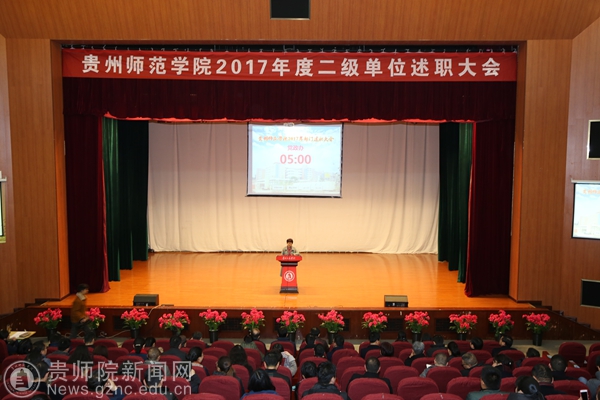 本网讯 1月3日pp电子2017年度二级单位述职大会在逸夫楼演播厅举行,全体校领导出席会议,全体处级干部和教职工代表参加会议。会议由学校党委副书记令狐彩桃主持。