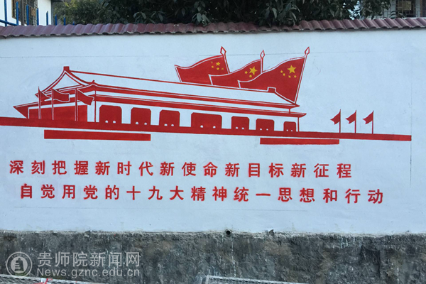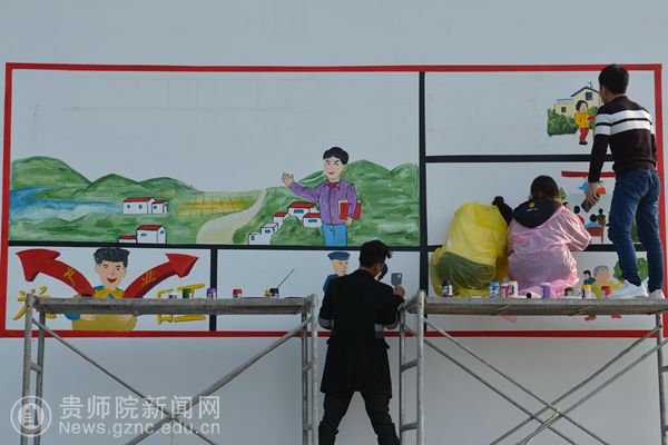 pp电子游戏官网设计学院分别于2017年8月19日-8月23日、12月8日-12月10日到印江土家族苗族自治县鹅岭街道办事处画壁画,壁画得到广大村民的喜欢,得到街道办事处领导的肯定,纷纷要求我们继续去画壁画。