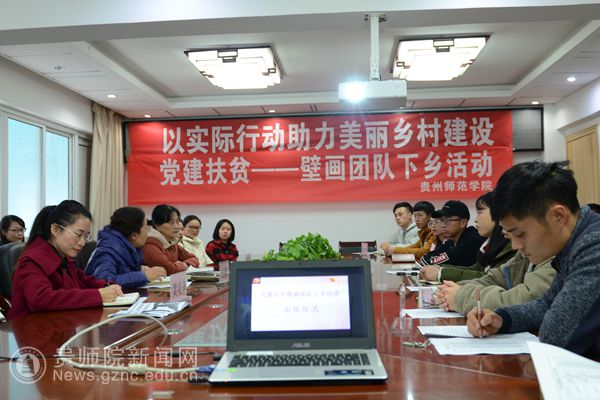 12月7日,pp电子游戏官网“党建扶贫·壁画团队下乡活动”出征仪式在设计学院会议室启动,学校组织部部长伍燕出席仪式并讲话,设计学院党委书记侯晓薇参加此次出征仪式,并对此次壁画活动的工作、交通、安全等作了具体的安排和部署。学生代表作了表态发言,仪式由设计学院团委书记黄美诤主持。