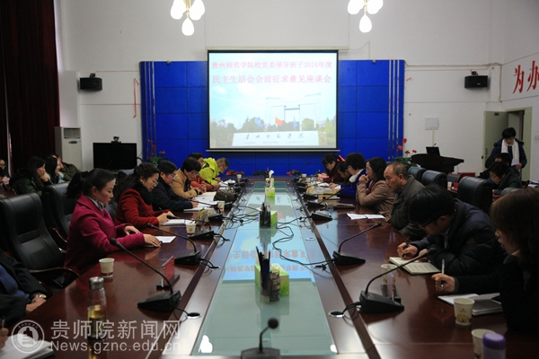 本网讯 1月3日下午,校党委领导班子2016年度民主生活会会前征求意见座谈会在第一会议室召开。校党委书记陈扬出席座谈会并讲话;校党委副书记令狐彩桃主持座谈会;各学院教师代表,机关干部职工代表,离退休职工代表,各基层党委书记,党政办、组织部、宣传部、统战部、学工部等相关部门主要负责人参加座谈会。