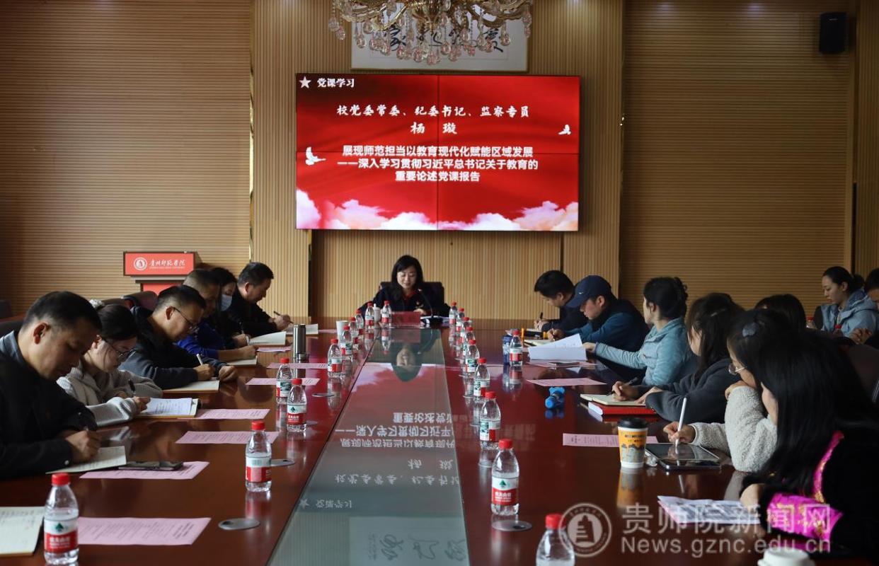 随后,杨璇以《展现师范担当 以教育现代化赋能区域发展——深入学习贯彻习近平总书记关于教育的重要论述》为题,为全体党员讲授了一堂深刻而生动的党课。她紧密结合《习近平谈治国理政》第五卷关于教育方面的核心内容,系统阐释了习近平总书记关于教育的重要论述的丰富内涵与时代价值,强调了教育在现代化建设中的基础性、先导性、全局性地位,并对全体党员教师如何践行教育家精神、服务区域发展提出了明确要求和殷切希望。
