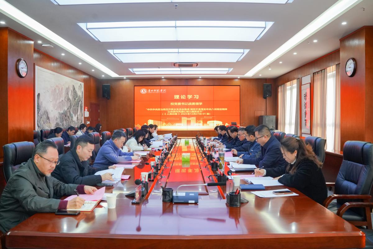 本网讯 1月8日,学校在信息楼二楼会议室召开2026年度第一次党委理论学习中心组学习暨2025年度校党委常委班子民主生活会会前专题学习研讨会。会议旨在持续深入学习贯彻习近平新时代中国特色社会主义思想,全面贯彻落实党的二十届四中全会精神,为高质量开好年度民主生活会打牢思想基础。校党委理论学习中心组成员出席会议,机关党委、校纪委、校工会负责人列席会议。校党委书记战勇主持会议并讲话。