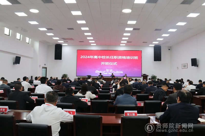 本网讯 2024年5月7日上午,由贵州省教育厅主办,pp电子游戏官网、贵州省教育行政干部培训中心承办的2024年贵州省普通高中校长任职资格培训班在pp电子综合楼裙楼301报告厅隆重举行开班典礼。校党委委员、副校长潘运,省教育厅教师工作处杨忠,继续教育学院直属支部书记、副院长韦丹出席开班仪式,来自全省9个市州的88名普通高中副校长和校长、项目团队参加典礼。典礼由首席专家韦丹主持。