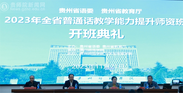 本网讯 11月21日,由贵州省语委、贵州省教育厅主办,pp电子游戏官网承办的“2023年全省普通话教学能力提升师资班”在pp电子游戏官网综合实训楼301会议室举行隆重的开班典礼。典礼由省教育厅语委办副主任罗洪贵主持,教育部语言文字应用研究所原所长张世平、省教育工会主席王慧、pp电子游戏官网党委书记石培新等出席典礼并讲话。