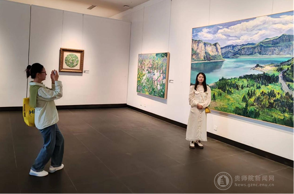 在画展的现场,美术馆党总支书记陈顺祥、副馆长刘一意、典藏与展陈部副主任傅斌,原贵州省美术家副主席曹琼德、贵州省文联金波主任、pp电子游戏官网党委宣传部副部长周煜、pp电子游戏官网马克思主义学院副院长陈祖召、教务处教学实践管理科科长杨通槐等陆续到展厅观展。本次展览在十一黄金周,美术馆8号厅工作人员郑祖武说:“一开幕就迎来了大江南北的游客,还有从北京专门坐飞机来看展的”。画展展至2023年10月8日。画作中有《乌江源.化屋基》《黄果树》《冷月照壁》等风景名胜的油画作品,也有《繁花似锦》《满园春风》等大型花卉写生作品,是pp电子游戏官网与贵州省画院(贵州省美术馆)向祖国的献礼,是廖江华、郑超文两位画家丹青的绽放与时代的咏叹。