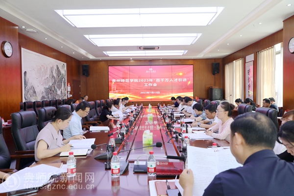 本网讯 为深入贯彻落实《关于优化整合贵州省百千万人才引进计划的指导意见》文件精神,推动完成学校2023年引才目标任务,7月13日上午,学校2023年人才工作领导小组会议在信息楼二楼会议室召开,全体校领导出席会议,校人才工作领导小组成员单位主要负责人、各学院党政主要负责人参加会议。会议由校长韦维主持。