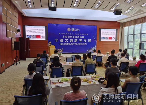 美术与设计学院20级产品设计专业的30余名学生同时参加了贵州文景眼文创园运营管理有限公司组织承办的主题为“非遗文创跨界发展”的多彩贵州非遗周末聚活动,数字媒体艺术专业张文婧副教授发表了主题为《数字化背景下的苗族手工艺的保护》的讲演。