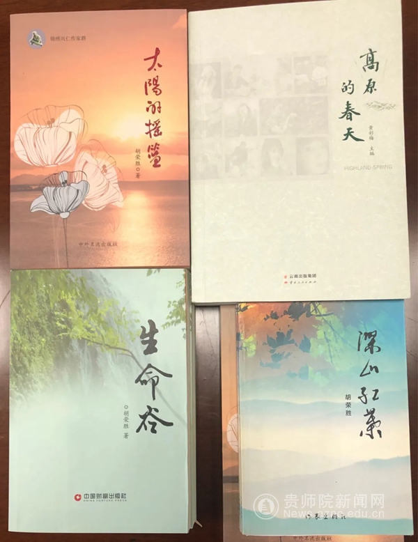 pp电子1994届教管本科专业校友、《兴仁文苑》期刊常务副主编胡荣胜向母校捐赠书籍《深山红叶》《太阳的摇篮》《高原的春天》《生命谷》各3本。