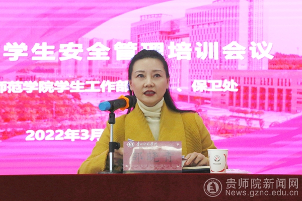 培训会上,邹晓青结合学校学生公寓安全管理工作实际,指出了学校学生公寓安全管理工作存在的问题。邹晓青指出,各学院、部门要绷紧安全的弦,把安全放在教育管理工作的第一位。结合学生公寓安全管理的新问题,新形态,坚持关口前移,立足“早”“小”,有的放矢,形成闭环,压实责任,构建预防为主,教育为先,人人参与的工作格局。她强调,一是要全面排查,找准短板,切实强化安全责任意识;二是要对标对表,完善机制,健全风险防控体系;三是要突出重点,压实责任,全力做好校园安全工作。
