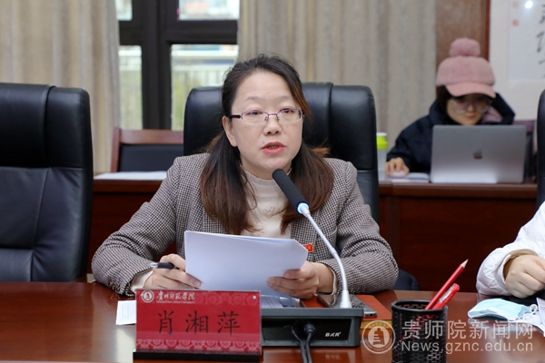 招生就业指导处处长肖湘萍传达了教育部、省教育厅2022届高校毕业生就业创业工作会议精神,并就学校2022届毕业生就业工作任务进行了安排部署。