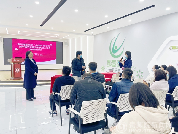 本网讯 11月2日上午,pp电子游戏官网工会在学工部职工书屋举办“中国梦劳动美”贵州省劳模和先进工作者事迹报告会。学工部部长刘红玲,文化与传媒学院学院教师、贵州省五一劳动奖章获得者吴科玉,创新与创业学院中心主任、贵州省先进工作者谭韬,基层工会干部,教职工代表及学生代表出席大会,会议由校工会主席许丽君主持。