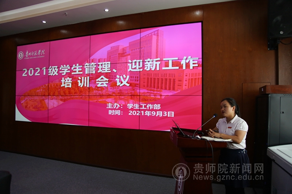 学生工作部副部长王珏、学生管理科科长邹万梅、综合科科长官鹏飞、宿管科谢娟老师、军事科刘颖老师、罗若锋老师分别围绕宿舍分配、新生14天健康摸排,迎新工作、入学教育、数字化迎新系统使用、军训、征兵工作、辅导员队伍管理等几个方面为新生辅导员班主任培训,针对新生工作重点环节进行解读,确保新生工作安全、高效、顺利开展。最后,由物理与电子科学学院雷仕娜、外国语学院卢静两位经验丰富的辅导员分享新生班级管理的满满干货。