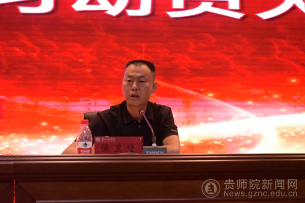 紧接着,疫情防控工作组组长、后勤处处长赵刚就疫情防控作出安排,要求实习生在实习过程中要加强个人防护、做好宣传引导、建立联控机制、加强外出管理、做好健康管理、尽早接种疫苗。学工部部长刘红玲要求学生在实习期间,严格落实“三不”和“四个一律”规定,做到健康生活“七要”,做好每日健康监测管理,按照学校管理要求进出校园。保卫处处长蒋江南对实习生出行安全进行教育培训,要求学生:一是实习外出期间要注意人身、财产、饮食、交通等安全。二是要提高安全防范意识,遇到问题要学会冷静沉着,第一时间与学院老师或110联系,寻求指导和帮助。