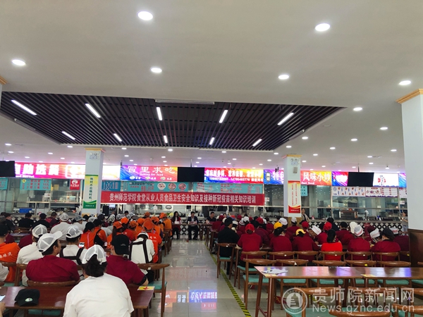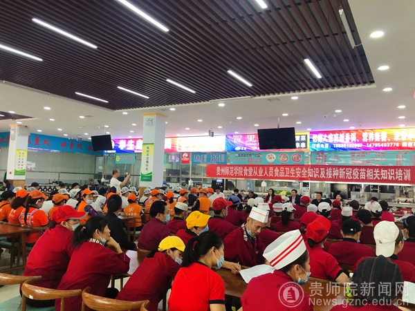 本网讯 人勤春来早,花满师院香。4月22日,后勤处以党史学习教育为契机,在感恩食府二食堂举办了pp电子游戏官网食堂从业人员食品卫生安全知识及接种新冠疫苗相关知识培训会。乌当区市监局高新分局副局长张悟、乌当区疾控中心主任医师张丽娜,后勤处主持工作副处长赵刚,相关科室负责人及美食街、食堂餐饮公司从业人员120余人参加本次培训会。