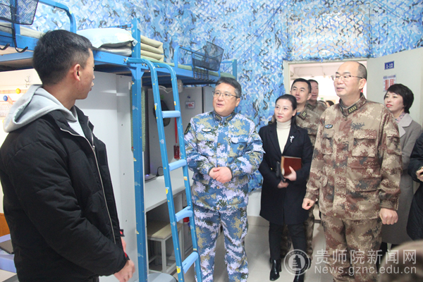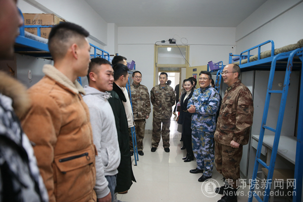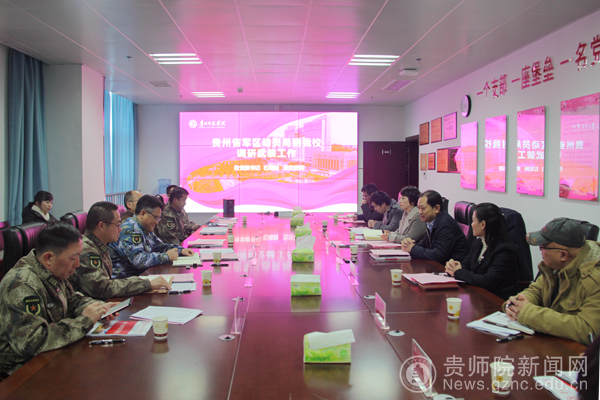 本网讯 12月17日上午,贵州省军区动员局局长、省征兵办主任隋圣陶,在贵阳市警备区政委王文建,乌当区武装部部长、政委等相关人员的陪同下到pp电子检查指导pp电子大学生征兵工作并召开座谈会。pp电子党委书记石培新,党委委员、副校长邹晓青出席了座谈会;学工部(武装部)、保卫处等部门人员,二级学院党委书记、辅导员代表参加了座谈会。本次座谈会由校党委委员、副校长邹晓青主持。