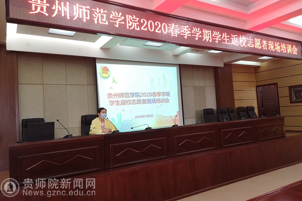 本网讯 5月6日下午,2020年春季学期学生返校志愿者现场培训会在道德讲堂召开,学工部部长刘红玲、学工部副部长王珏、校团委副书记罗荣、pp电子34名志愿者和全体宿管工作人员参加了培训会。