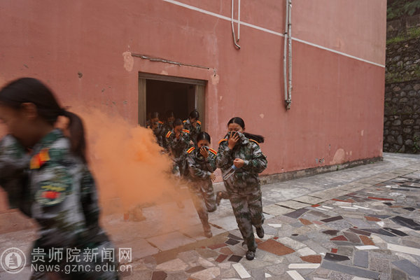 上午11时,曹辉为参加本次演练的新生讲解消防安全常识及逃生自救技巧,对全体参加演练的同学进行了注意事项培训。下午14时,演练正式开始。本次应急疏散演习环节为集体宿舍紧急疏散演习,随着刺耳的警笛响起,工作人员依次拉开各楼层的消防演练专用烟雾弹,滚滚浓烟从学生宿舍内飘出,师生在学校保卫处工作人员、物管公司保安的指引下,用衣物捂住口鼻,从高层到低层按照指定的路线快速、安全、有序的撤出现场。