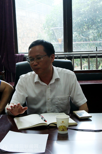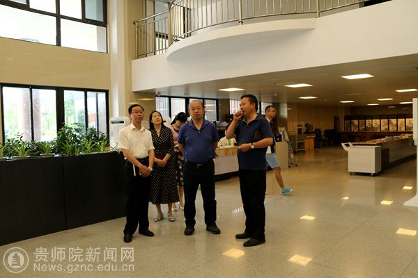 本网讯 6月24日上午,校长郁钟铭、副校长熊世桓到图书馆实地调研指导工作。现场考察了图书馆近期新改造的大厅、二十四小时自修区、开放阅览区、贵宾会议室等场所,重点调研了资源加工室、保存本库、过刊书库、尹珍书屋、基础教育资源实训、校本成果库、古籍书库等图书馆特色工作平台和库室。