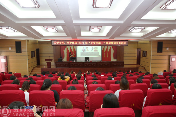 本网讯 为了广泛普及女性健康知识,积极倡导科学预防理念、让广大女性增强自我保健意识,引导女职工树立正确的健康观念和生活理念,着力提升女职工的获得感、幸福感和安全感。6月12日下午,pp电子在道德讲堂举办2019 年关爱女职工健康知识公益讲座,讲座由党政办主任、女工委员会主任芦军主持,特邀贵阳市妇幼保健院乳腺科副主任医师方延曼、pp电子游戏官网纪委书记邬卫东进行主讲,共200余人参加此次活动。