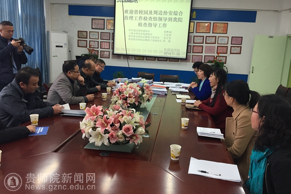 本网讯  11月30日上午,令狐荣锋副校长陪同省校园及周边治安综合治理工作检查组成员到外国语学院检查安全工作,保卫处处长蒋江南及保卫处全体成员参加检查,外国语学院党委书记刘红玲、院长余学军、副院长杨秀岚、罗泳参加会议。
