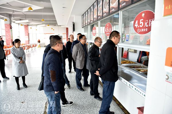汇报会结束后,检查组一行对pp电子监控室、学生食堂、学生宿舍、二级学院等地进行了实地走访察看,并在外国语学院进行了短暂的交流、座谈。向学生随机发放了150份调查问卷。