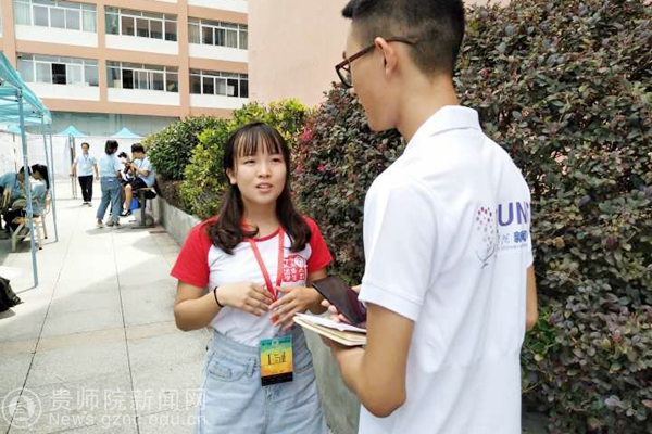 在工作中遇到困难是不可避免的。余雨雪给我们说起了此次工作中碰到的难题:新生到校后需要扫描一个二维码,但一些学生及家长疑心这可能是一种诈骗手段,因此心中颇为犹豫。不过在志愿者们耐心仔细地解释这只是一个官方微信公众号后,众人都放下了戒备,纷纷拿出手机扫描了二维码。虽然中途有时会出现人手不足的现象,但在大家共同的努力下还是解决了这些问题。迎新志愿者在遇到困难时,会向她寻求帮助,绕后共同去解决。