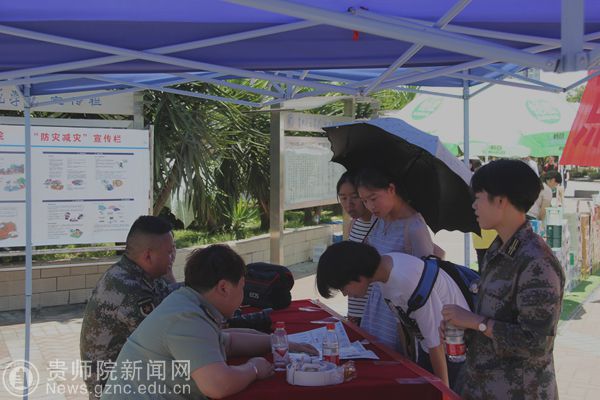 本网讯 6月7日,pp电子人民武装部联合乌当区人民武装部在学校奋斗广场举行2018年大学生征兵宣传、咨询活动。