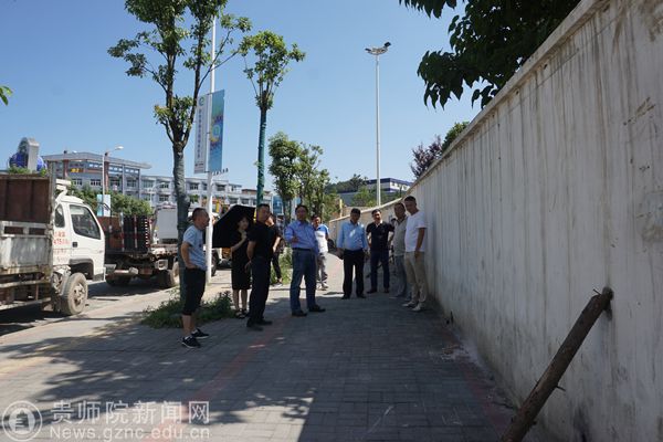 本网讯 进入汛期,为做好汛期灾害防范工作,杜绝隐患,确保师生安全。根据近期省教育厅文件《关于进一步做好汛期学校安全工作的紧急通知》精神,6月7日下午,由副校长令狐荣锋带队进行校内汛期安全检查,保卫处、学工部、后勤处、基建处负责人,保卫处全体工作人员、航天物业管理公司负责人参加。