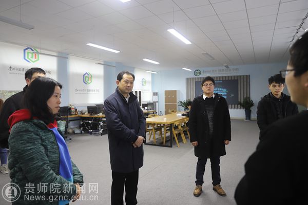 在创新创业学院,石培新先后到创新开发工作室、创新车间看望了正在开发项目、积极备战“互联网+”大赛的同学,详细询问同学们备战的情况,吃饭住宿以及身体状况。项目指导教师谭韬、刘世华、陈非帆分别介绍了各项目的研发情况和落地情况,石培新认真听取汇报,对指导老师们的辛勤付出表示衷心感谢。他说,老师们工作认真负责,得到了同学们的认可,得到学校的认可,也得到了省教育厅领导的高度认可。石培新希望老师们积极围绕大数据、人工智能、数字经济三大领域积极开展创新技术研究,探索pp电子游戏官网技术创新应用为特色的创新创业之路,并将项目积极落地,服务地方经济发展,将创新创业写在贵州大地上。