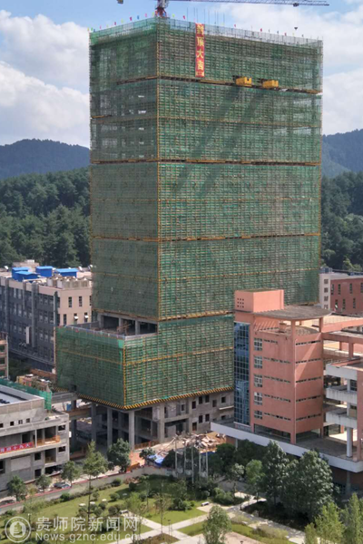 pp电子师范教育实践训练中心综合楼项目属于国家中西部高校基础能力建设工程。该项目建筑面积48277.76平方米,建筑高度97.3米,地下3层,地上25层,建成后,学校办学条件将得到进一步改善。该项目于2016年4月18日正式开工,在校领导的正确领导下,通过各参建单位的共同努力,历经1年零5个半月的艰苦施工,于2017年9月30日上午10时完成最后一桶混凝土的浇筑工作,标志着该项目主体结构顺利封顶,进入内部装修施工阶段,预计2018年7月竣工验收投入使用。