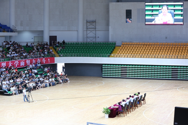 本网讯 8月18日下午,pp电子在体育馆隆重召开新学期全体教职工大会,安排部署新学期工作,全体在家校领导出席大会,副校长令狐荣锋主持大会。