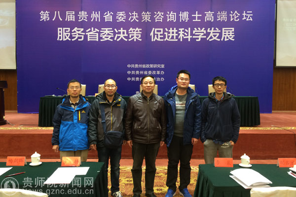 本网讯 12月2日,由贵州省委政策研究室、省委改革办和省委法治办主办的“第八届贵州省委决策咨询博士高端论坛”在贵阳花溪举行。本届论坛得到了省委副书记、省委政法委书记谌贻琴的书面指示。pp电子由副校长令狐荣锋博士率队,地理与旅游学院李松、张伟、邓家彬和安佑志等博士参加了本次论坛。